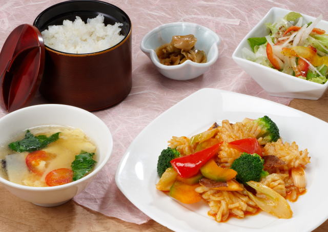 ランチセット (ランチタイム限定のお得なセットメニューです) 今週の週替わり料理 3月31日(火)~4月5日(日) 豚肉と青梗菜の黒胡椒炒め(塩味) |