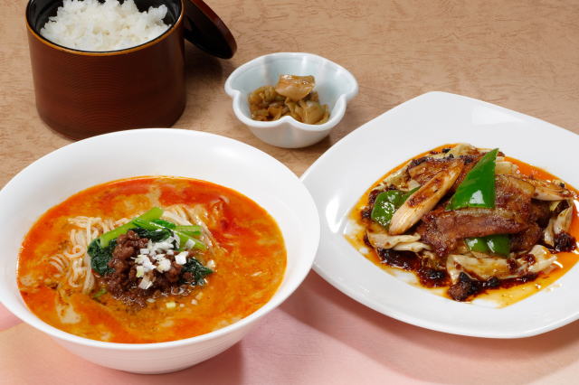 選べる麺&料理セットランチ (麺とメイン料理をどちらもそれぞれお選びいただけるランチです) 2,200円 ![]() 写真はイメージです。実際のものとは少々異なります。 ・メイン料理(エビチリor酢豚orチンジャオニューロースor陳麻婆豆腐orイカの塩炒めor週替わり料理(料理内容はHPランチ欄トップをご覧ください)) ・ハーフサイズ麺 (チャーシュー麺or坦々麺or酸辣麺or海老ワンタン麺(塩味or醤油味)or汁なし担々 麺or四川焼きそばor海老入り上海焼きそば) ・サラダ ・ライス ・小鉢(内容は日々変わります) ・漬物 ※+300円で麺をレギュラーサイズに変更できます。 |