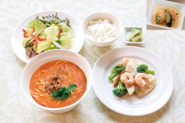 麺定食 1,700円 ![]() 写真はイメージです。実際のものとは少々異なります。また写真の麺はレギュラーサイズのものになります。 ・ハーフサイズ麺(チャーシュー麺or担々麺) ・今週の料理(料理内容はHPランチ欄トップをご覧ください) ・ライス ・漬物 ※+300円で麺をレギュラーサイズに変更できます。 |