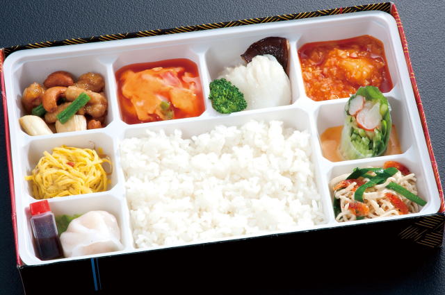 8品の料理を少しずつ味わえる華やかなお弁当です。