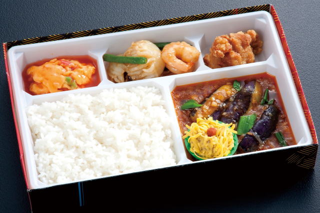 ボリュームのあるお弁当です。メイン料理を麻婆豆腐に変更も承ります。
